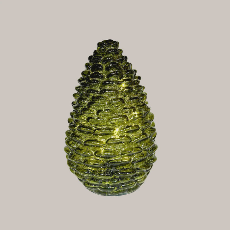 Glass Pinecone with Lights in Green